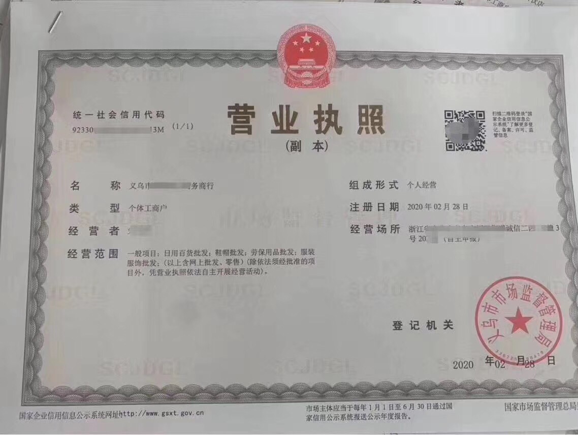 (2)公司名稱:義烏市XX電子商務(wù)商行/義烏市XX貿(mào)易商行,可以隨機(jī)也可以自己準(zhǔn);