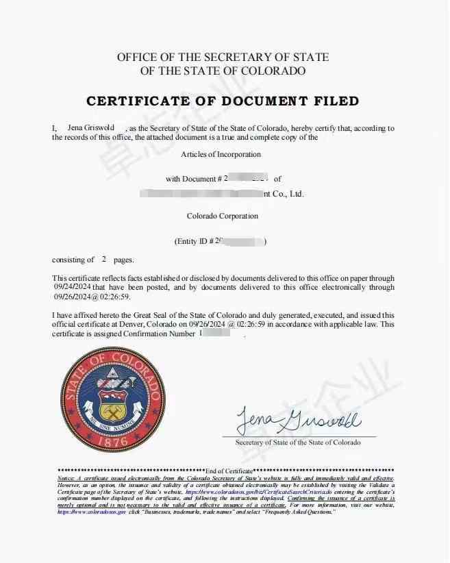 4.經(jīng)營(yíng)范圍限制:科羅拉多州對(duì)公司經(jīng)營(yíng)范圍無(wú)特殊限制,只要合法經(jīng)營(yíng)即可