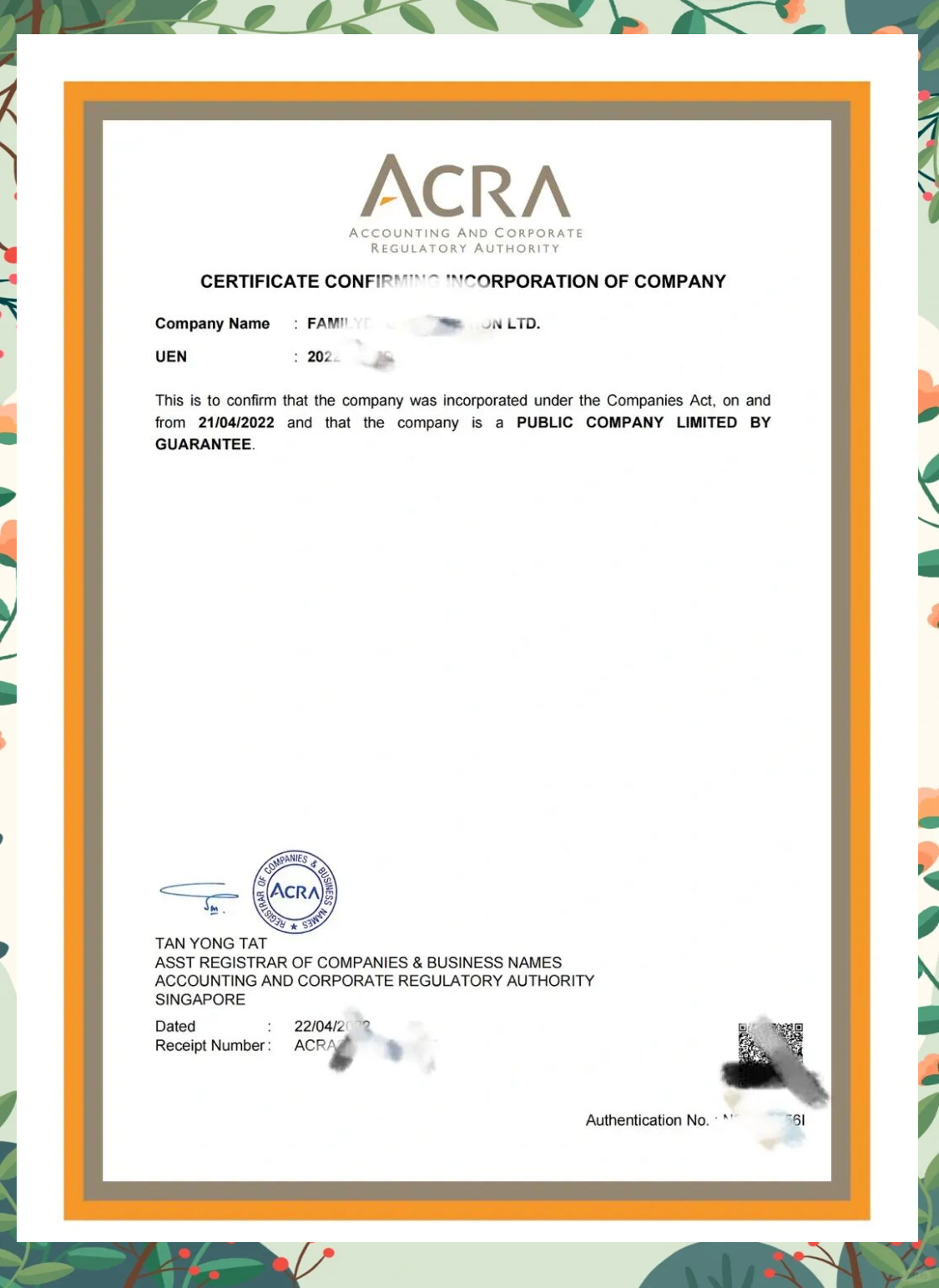 在新加坡完成基金會注冊后,通常會獲得以下資料: