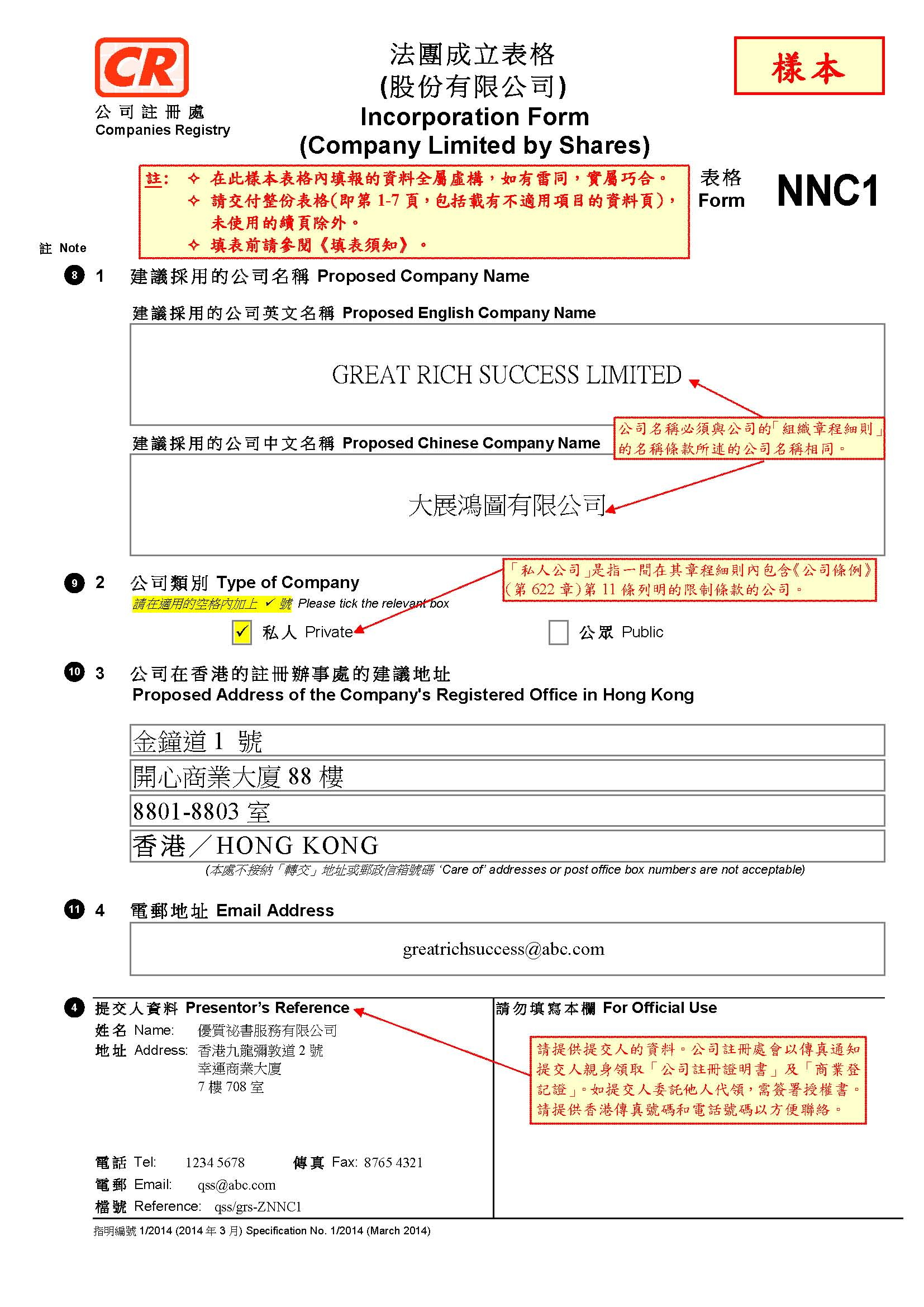 NNC1是香港公司注冊時使用的法團成立表格,全稱為“