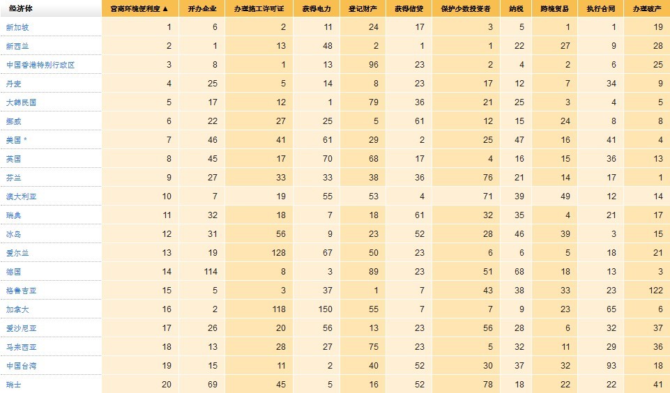 離岸快車從世界銀行發(fā)布的《2015 年營商環(huán)境報告》了解到,香港的營商便利程度全球排名第三,較去年下降一位。與去年相同,得分由84.45分微升至84.97分,新加坡則連續(xù)九年摘冠,新西蘭緊隨其后,中國內(nèi)地排名則上升3位至90位。港府對調(diào)查結(jié)果表示歡迎,并對世銀有關(guān)「開辦企業(yè)」得分下跌作出解釋,稱商業(yè)登記費一直存在,20年來都未曾調(diào)整。 香港政府:商業(yè)登記費20年無調(diào)整 世銀通過10項指標(biāo),以比較全球189個經(jīng)濟體在便利營商方面的整體表現(xiàn)。10項指標(biāo)之中,香港在申請建筑許可方面名列榜首;保障小股東投資者和跨境貿(mào)易均位居次席;繳納稅款排名第4;執(zhí)行合同排名第6;開辦企業(yè)排名第8。 世界銀行代表昨于視象會議中表示「香港調(diào)高商業(yè)登記證費,使開辦企業(yè)更加困難」,令香港于「開辦企業(yè)」項目分數(shù)有所下跌,消息傳出后政府發(fā)言人于新聞稿中回應(yīng)指,「商業(yè)登記費在20年來都未曾調(diào)整」,去年因經(jīng)濟環(huán)境欠佳,所以于2013年4月1日至 2014年4月1日期間,實施一次性的寬免商業(yè)登記費政策,并已回復(fù)正常,故未有「調(diào)高商業(yè)登記費」之說。 「產(chǎn)權(quán)交易」表現(xiàn)最差 香港排96名 「開辦企業(yè)」指數(shù)中,香港港排第8位不算低,而于各項指標(biāo)中表現(xiàn)最差的是「產(chǎn)權(quán)交易」的表現(xiàn),在189 個經(jīng)濟體中僅排96名,報告合著者姜南解釋,本港產(chǎn)權(quán)的交易天數(shù)高達35.5天,較發(fā)達國家平均的24天為高,交易成本占產(chǎn)權(quán)價值的7.7%,亦高于平均的4.2%,使本港得分在該項目上表現(xiàn)參差。 姜南補充指,若政府能縮短產(chǎn)權(quán)交易天數(shù),及降低成本,相信「產(chǎn)權(quán)交易」指數(shù)有一定的提升空間。 雖然是次報告本港排名沒有改變,不過得分較去年增加0.52分,成功收窄與連續(xù)九年排第一的新加坡得分差距,差距從3.85分收窄至3.3分。港府發(fā)言人認為,是次得分有所提高,乃世銀對港府于推動方便營商環(huán)境工作的肯定,未來將會繼續(xù)精簡規(guī)條,提高監(jiān)管效率,改善營商便利度。 世銀贊新例增小股東保障 香港于今年3月實施新《公司條例》,新增要求董事向董事會其他成員更詳細披露有關(guān)利益沖突的規(guī)定,世銀于會議上贊揚政策加強對小股東的保障,而香港于「保障小股東權(quán)益」方面,是本港叁項排名向上的指標(biāo)之一,從第3位升至第2位。 該報告得分較高者都屬于規(guī)模較小的經(jīng)濟體,不論新加坡、新西蘭抑或香港,而中國內(nèi)地、巴西等新興國家排名則處于中后段,有分析員提醒,報告并非衡量營商環(huán)境的單一指標(biāo)。 世界銀行首席經(jīng)濟學(xué)家巴蘇承認,現(xiàn)代經(jīng)濟體就似復(fù)雜的有機體,而「《營商環(huán)境報告》評估的只是其中微小的部分」,經(jīng)濟體即使于報告上表現(xiàn)參差,但宏觀經(jīng)濟政策或社會福利上也可有良好表現(xiàn)。 相關(guān):2014年營商環(huán)境報告 香港名列前茅 |
