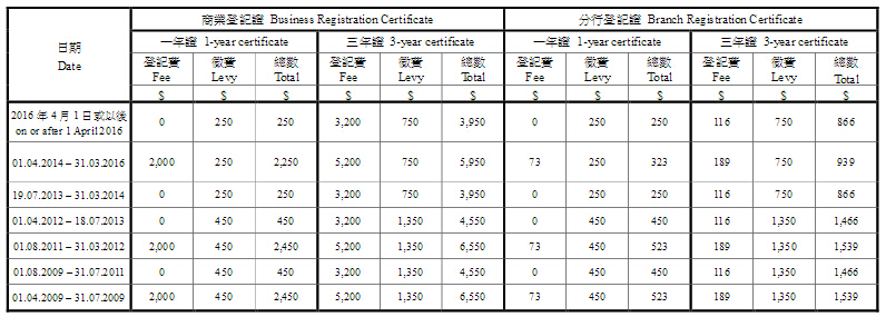 除本地公司首張登記證外,應(yīng)繳金額以登記證的開始生效日厘訂。對于非本地公司新開業(yè)務(wù),其首張登記證的開始生效日期是有關(guān)業(yè)務(wù)的開業(yè)日期,不是申請商業(yè)登記或分行登記日期。