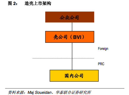造殼上市是指境內(nèi)公司將境內(nèi)資產(chǎn)以換股等形式轉(zhuǎn)移至在境外注冊的公司,通過境外公司來持有境內(nèi)資產(chǎn)或股權(quán),然后以境外注冊的公司名義上市。造殼上市的主要特點(diǎn)是融資來源和退出機(jī)制都在境外實(shí)現(xiàn),即“海外曲線 IPO”。