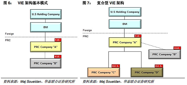 VIE(Variable Interest Entity),即”可變利益實(shí)體”,或”協(xié)議控制”,由于新浪首先采用該模式在美國成功上市,因此又稱”新浪模式”,具體是指境內(nèi)運(yùn)營實(shí)體的實(shí)際控制人 在境外注冊成立上市主體,境外上市主體通過采用一系列排他性協(xié)議的方式控制境內(nèi)運(yùn)營實(shí)體,取得境內(nèi)運(yùn)營實(shí)體的主要收入和利潤,從而達(dá)到將境內(nèi)運(yùn)營實(shí)體的會(huì) 計(jì)報(bào)表并入境外上市主體的目的,此時(shí),境內(nèi)運(yùn)營實(shí)體就是境外上市主體的VIEs(可變利益實(shí)體)。