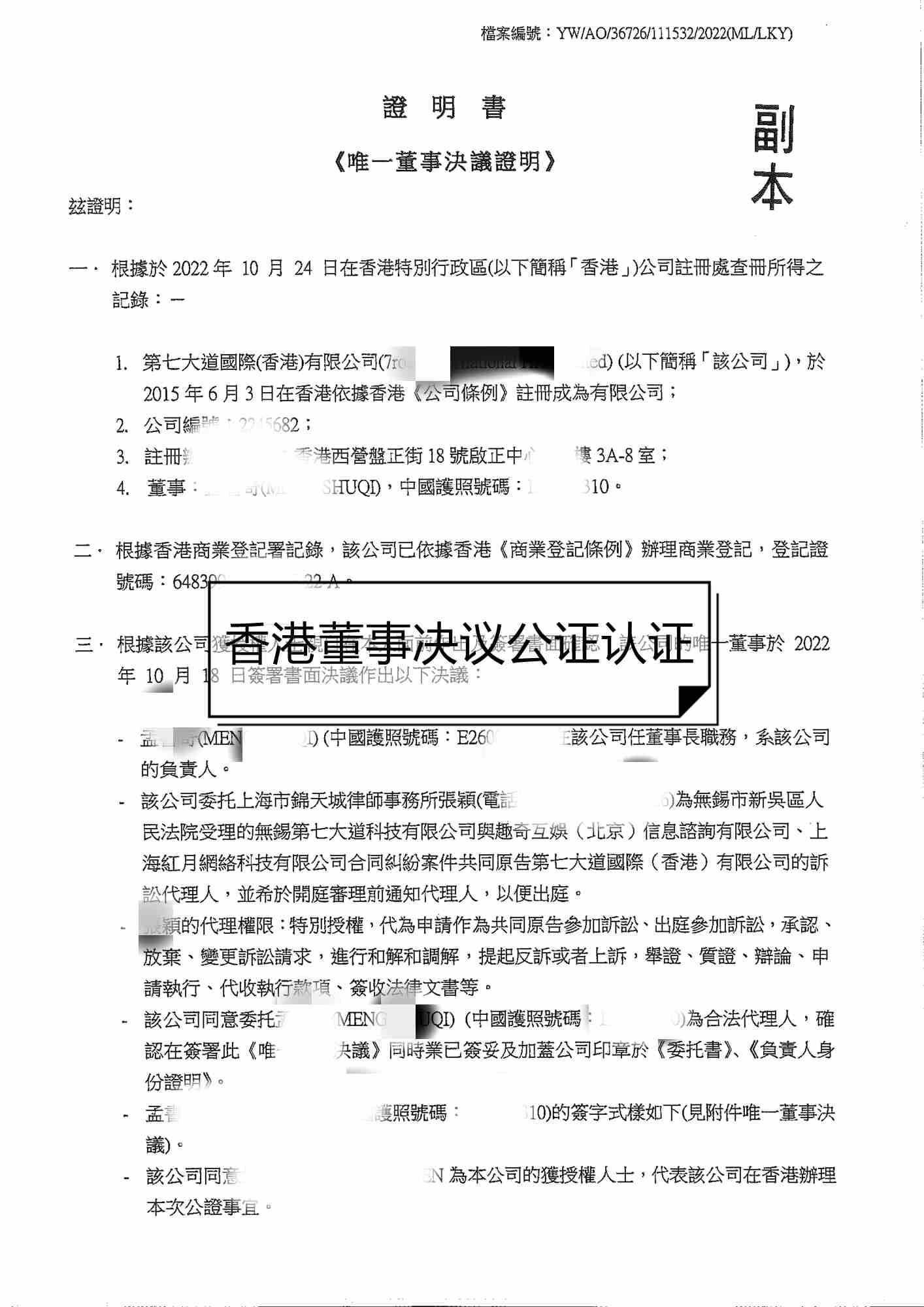 2.委托香港律師到中國法律服務(wù)(香港)有限公司加蓋轉(zhuǎn)遞章,整個認證時長為一周。