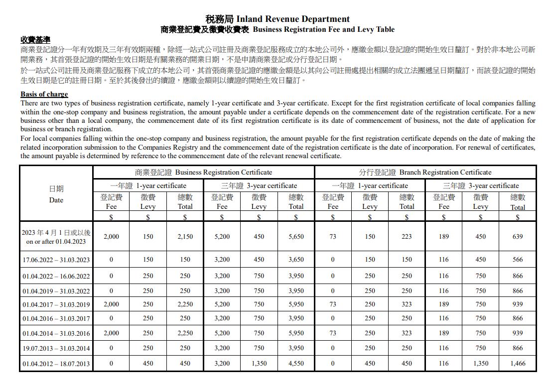 可以打開香港稅局這個網址查看:https://www.ird.gov.hk/eng/pdf/brfee_table.pdf