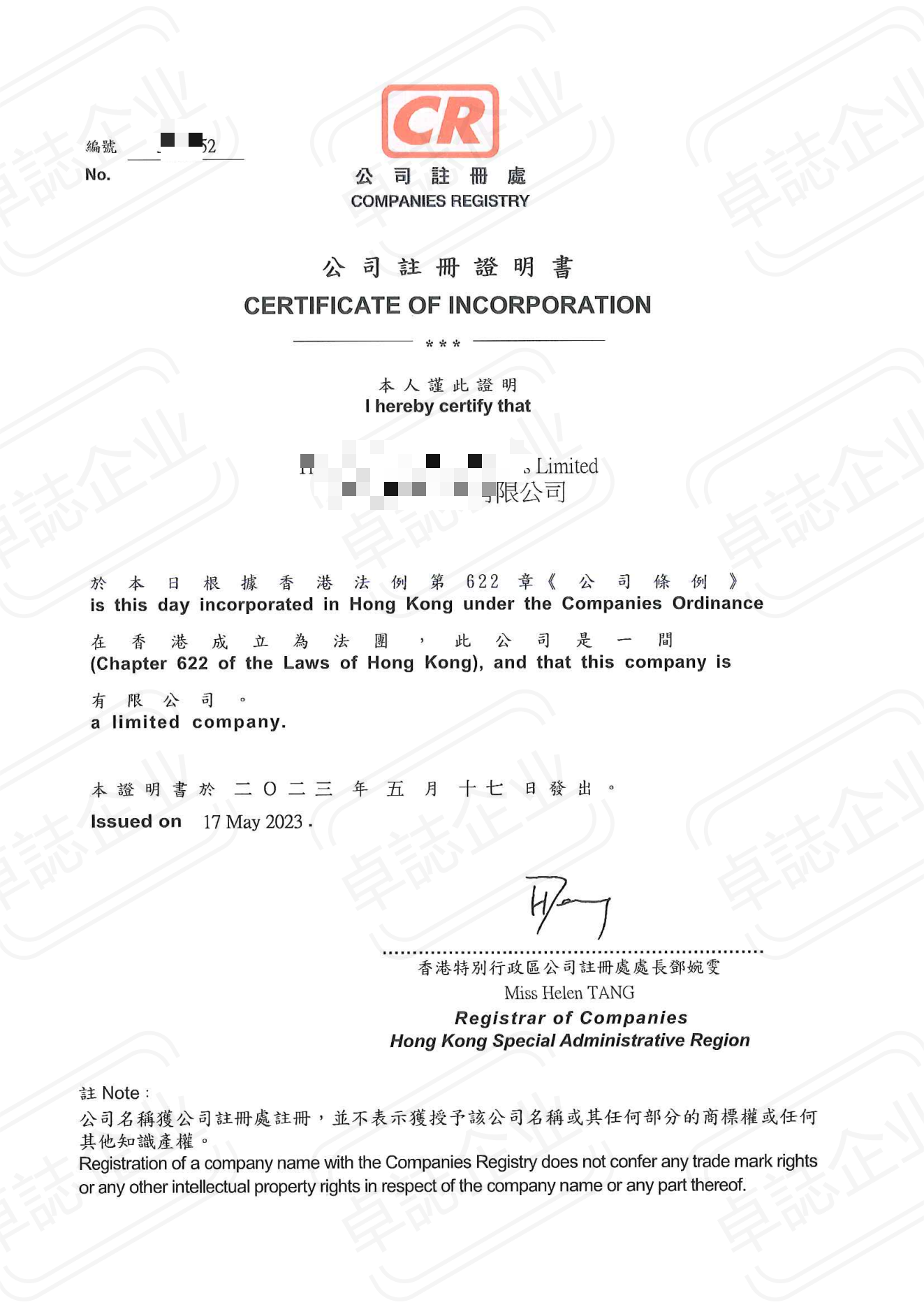 - 公司注冊(cè)證明書(shū)(CI) 英文全稱為Certificate of Incorporation,簡(jiǎn)稱CI。由公司注冊(cè)處發(fā)出。作用類似于公司?'身份證'。公司編號(hào)不會(huì)因?yàn)楣靖拿侄淖儭?/li>