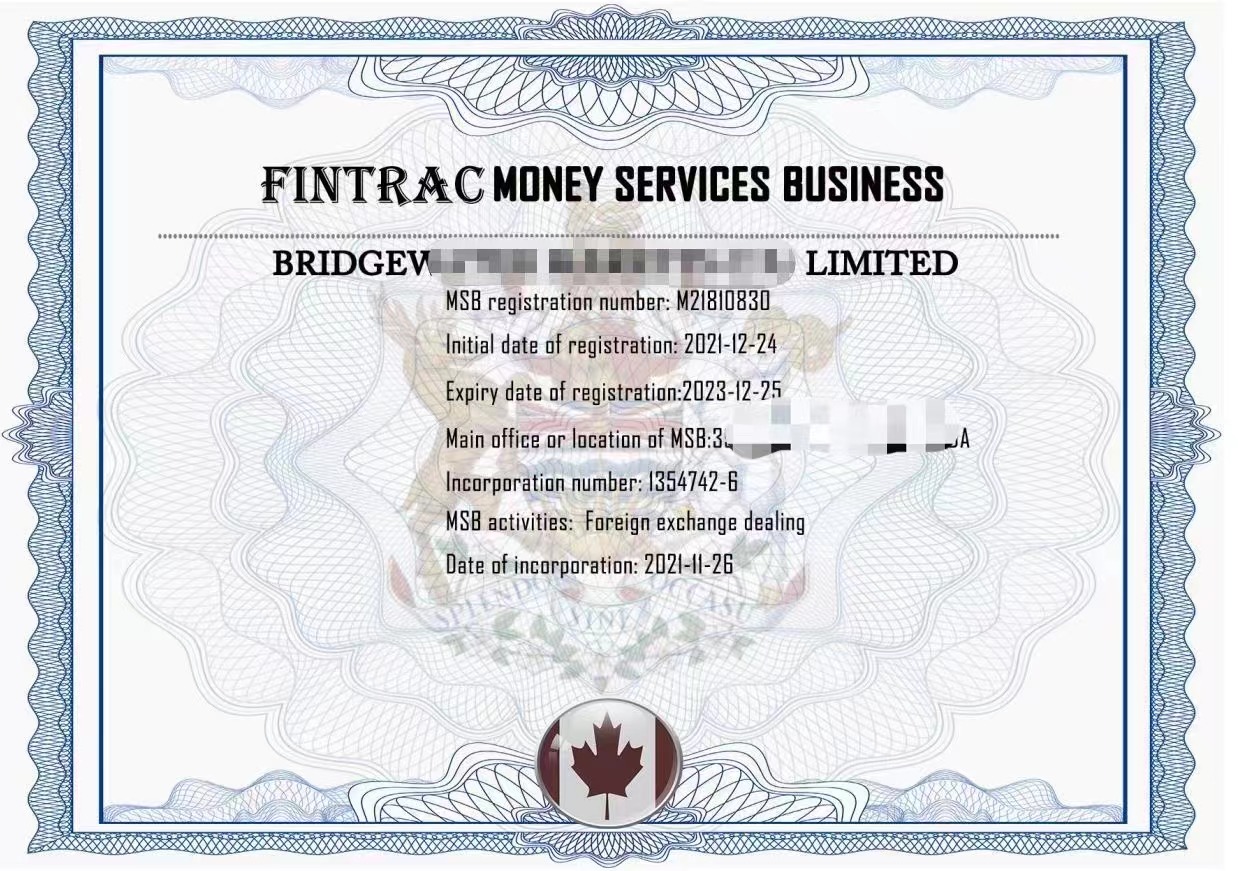 加拿大MSB的監(jiān)管范圍是:1外匯交易2資金支付3兌換或出售匯票4虛擬貨幣交易。