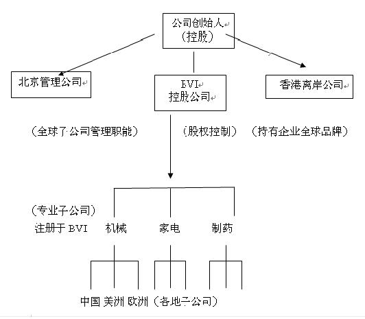 背景介紹:某民營(yíng)企業(yè)借助于創(chuàng)始人幾十年的創(chuàng)業(yè)和奮斗,在中國(guó)、歐洲和美洲分別建立了機(jī)械、電器、制藥等三大產(chǎn)品系列的許多公司,但公司與公司之間都是獨(dú)立法人,股東均系創(chuàng)始人及不同合作伙伴,且因不同地方公司需遵循不同法律制度,長(zhǎng)期以來(lái)集團(tuán)治理結(jié)構(gòu)不完善,資本運(yùn)作有較多困難,公司創(chuàng)始人對(duì)于整個(gè)投資的結(jié)構(gòu)安排非常不滿。