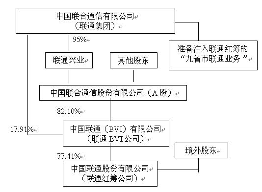 為了將九省市聯(lián)通業(yè)務(wù)順利注入聯(lián)通紅籌公司,聯(lián)通公司設(shè)計(jì)了如下的并購(gòu)方案: