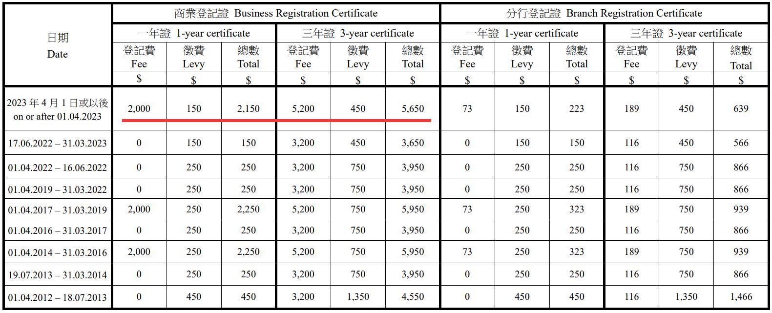4月起商業(yè)登記證上漲2000元。答