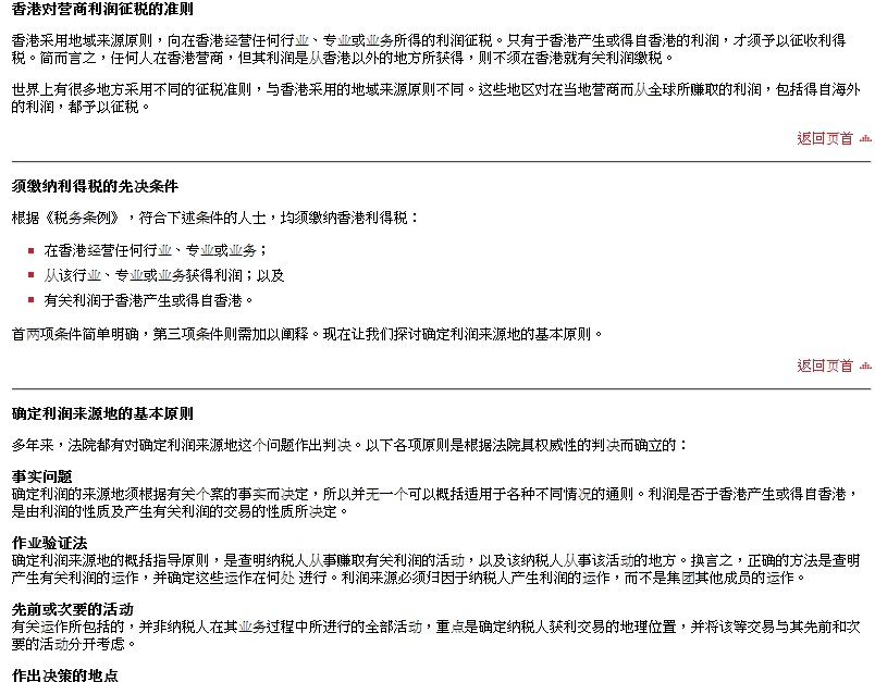 也可以繼續(xù)閱讀香港稅務(wù)局網(wǎng)站上的《地域來源征稅原則》www點ird點gov點hk/chs/paf/bus_pft_tsp.htm
