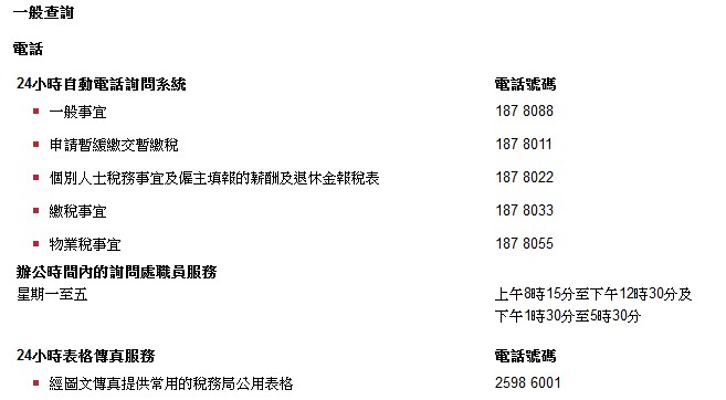其實很多信息都可以在稅局網(wǎng)站上打到,你打開好好看看。網(wǎng)址 ird.gov.hk/chi/cu_enqs.htm#ge_cte