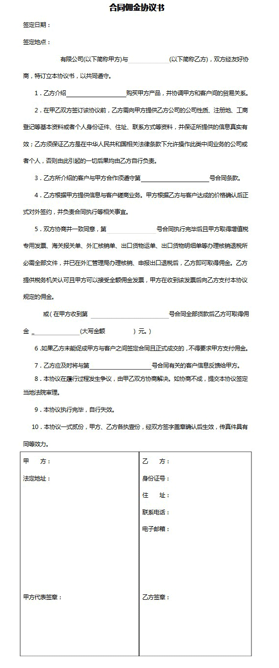 樓主,看看這個(gè)傭金協(xié)議行不行。