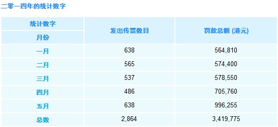 2014年一月至五月,香港公司注冊處已向2864家公司發(fā)出法院傳票,平均每月有573家香港公司因違規(guī)被罰,目前罰款總額達(dá)341萬多港元,平均每間公司被罰1190港元。