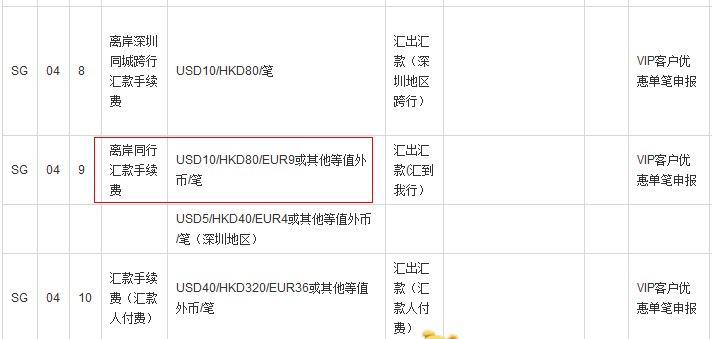 離岸同行匯款手續(xù)費(fèi):USD10/HKD80/EUR9或其他等值外幣/筆