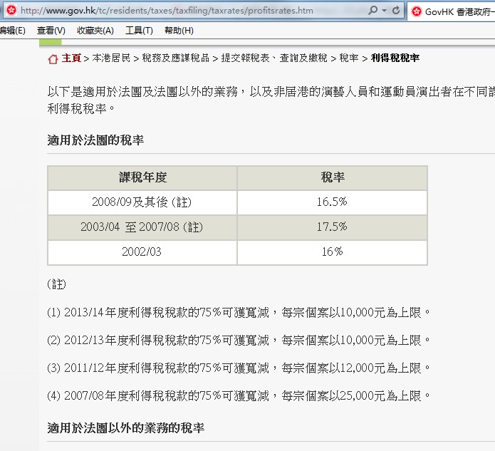 香港利得稅減免1萬答