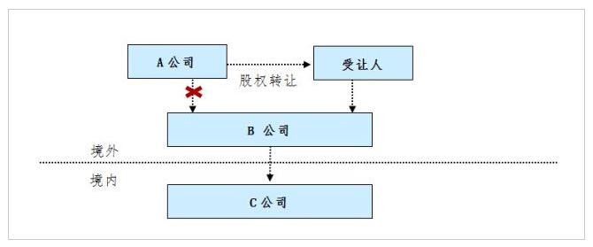 本條件的主要目的是防范境外企業(yè)濫用稅收協(xié)定安排。同樣以上述A、B、C公司舉例,假設(shè)A公司通過B公司間接持有C公司20%的股權(quán),A公司將B公司的股權(quán)轉(zhuǎn)讓給境外公司D,假設(shè)D公司再次將B公司轉(zhuǎn)讓給境外公司E,該交易與A公司直接將B公司轉(zhuǎn)讓給E公司的交易相比,如果沒有減少中國應(yīng)稅財產(chǎn)在中國的所得稅負擔(dān),則符合該條件。