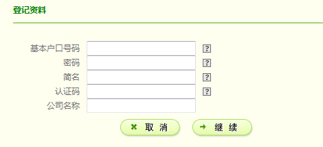 進(jìn)入這個(gè)頁面,輸入銀行提供給你的賬戶號(hào)碼、登記碼、密碼等信息點(diǎn)擊繼續(xù)
