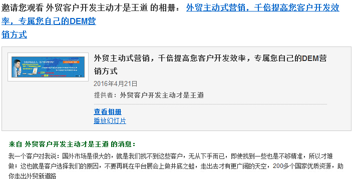 阿里巴巴要會(huì)運(yùn)營,還要看投的廣告多少。 開發(fā)信要找對(duì)客戶,也就是說開發(fā)信就是瞎貓碰死耗子,看你能不能碰上。當(dāng)然,你開發(fā)信的量大時(shí),是有一定比例回復(fù)的。答