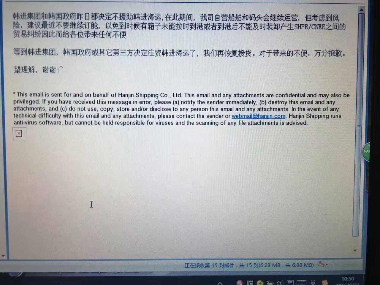 因韓進(jìn)船公司破產(chǎn)導(dǎo)致延伸到共艙船! 長榮和韓進(jìn)共艙,母船是韓進(jìn)。 因?yàn)樯虾8劬芙^韓進(jìn)船靠上海港,長榮箱也出不去。 已經(jīng)報(bào)關(guān)裝箱進(jìn)港的所有韓進(jìn)箱子,現(xiàn)在全部要去海關(guān)做刪單,做提離港區(qū)的證明。 要重新配船,還要重新裝箱,重新報(bào)關(guān)。