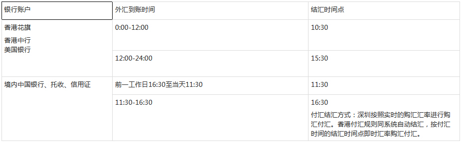 1.系統(tǒng)自動(dòng)結(jié)匯:僅在法定工作日(不包括調(diào)休的工作日),一天僅結(jié)匯兩次,上午一次,下午一次,時(shí)間段內(nèi)到的外匯按結(jié)匯時(shí)間點(diǎn)的中行即時(shí)掛牌匯率即時(shí)結(jié)匯(若官網(wǎng)沒有整點(diǎn)匯率,系統(tǒng)會(huì)自動(dòng)選擇整點(diǎn)前一個(gè)匯率結(jié)匯),如下: