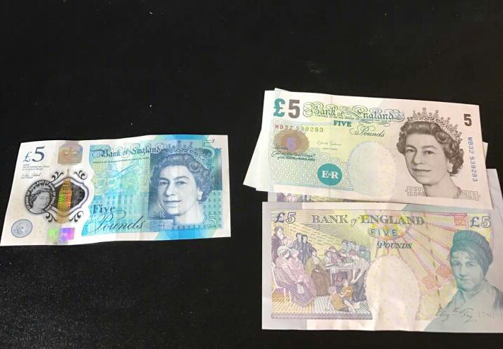 注意,明天英國舊版紙質(zhì)五英鎊要停止市面流通啦(圖片右邊那種)