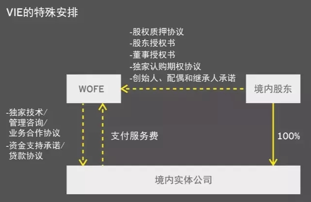 WOFE須和境內(nèi)實體公司簽署獨家技術(shù)服務(wù)或其他相類似的業(yè)務(wù)合作/管理咨詢協(xié)議,讓W(xué)OFE可以按照自己的需要來吸收境內(nèi)實體公司所賺取的利潤。