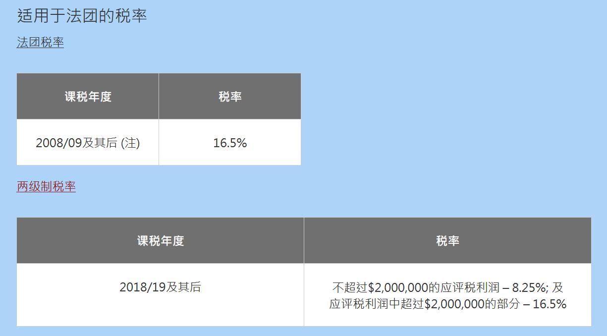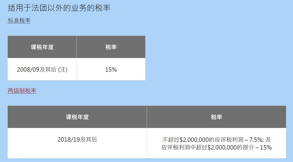 香港企業(yè)利得稅稅率一直都保持 16.5%的稅率。實(shí)行兩級(jí)稅制后,首個(gè)200萬(wàn)利潤(rùn)稅率減半,按8.25%稅率征稅,200萬(wàn)以后的利潤(rùn)按16.5%正常稅率征收。答