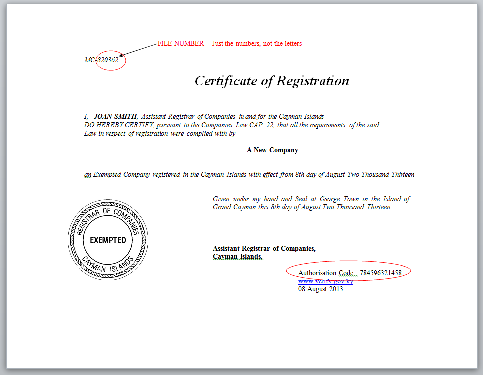 輸入開曼公司注冊(cè)證書左上角數(shù)字或者上面的File Number,不要輸字母。輸入開曼公司注冊(cè)證書左上角數(shù)字,不要輸字母。再輸入右下角的 Authorisation Code