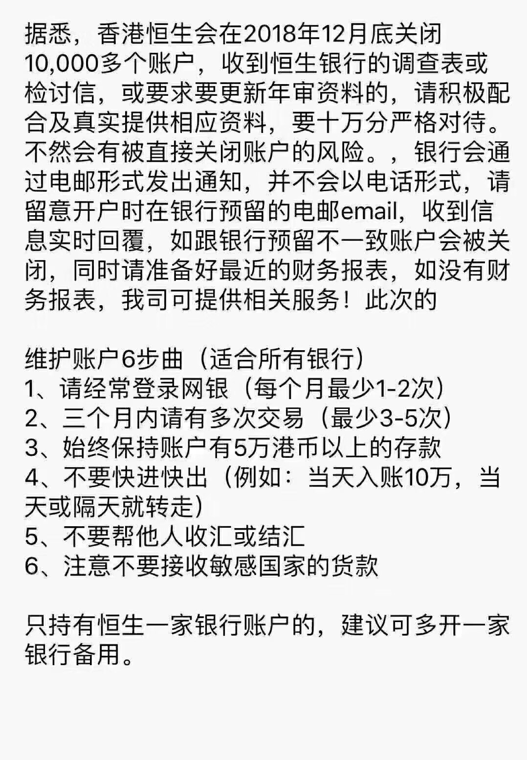 1.大部分客戶的匯豐或恒生銀行賬戶被銀行方面凍結(jié)了???收款或匯款功能,銀行方面直接通過(guò)短信、郵件的方式通知即將停止提供公司賬戶的相關(guān)服務(wù)。
