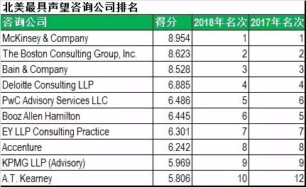ATK,LEK等二線咨詢公司繼續(xù)下滑。羅蘭貝格作為歐洲咨詢公司,相對(duì)吃虧,但這也是其第一次出現(xiàn)在北美榜單的前30名。MBB的地位無(wú)可動(dòng)搖,而四大因?yàn)槠錁I(yè)務(wù)關(guān)聯(lián)性優(yōu)勢(shì),同樣保持在前十的陣容中間。
