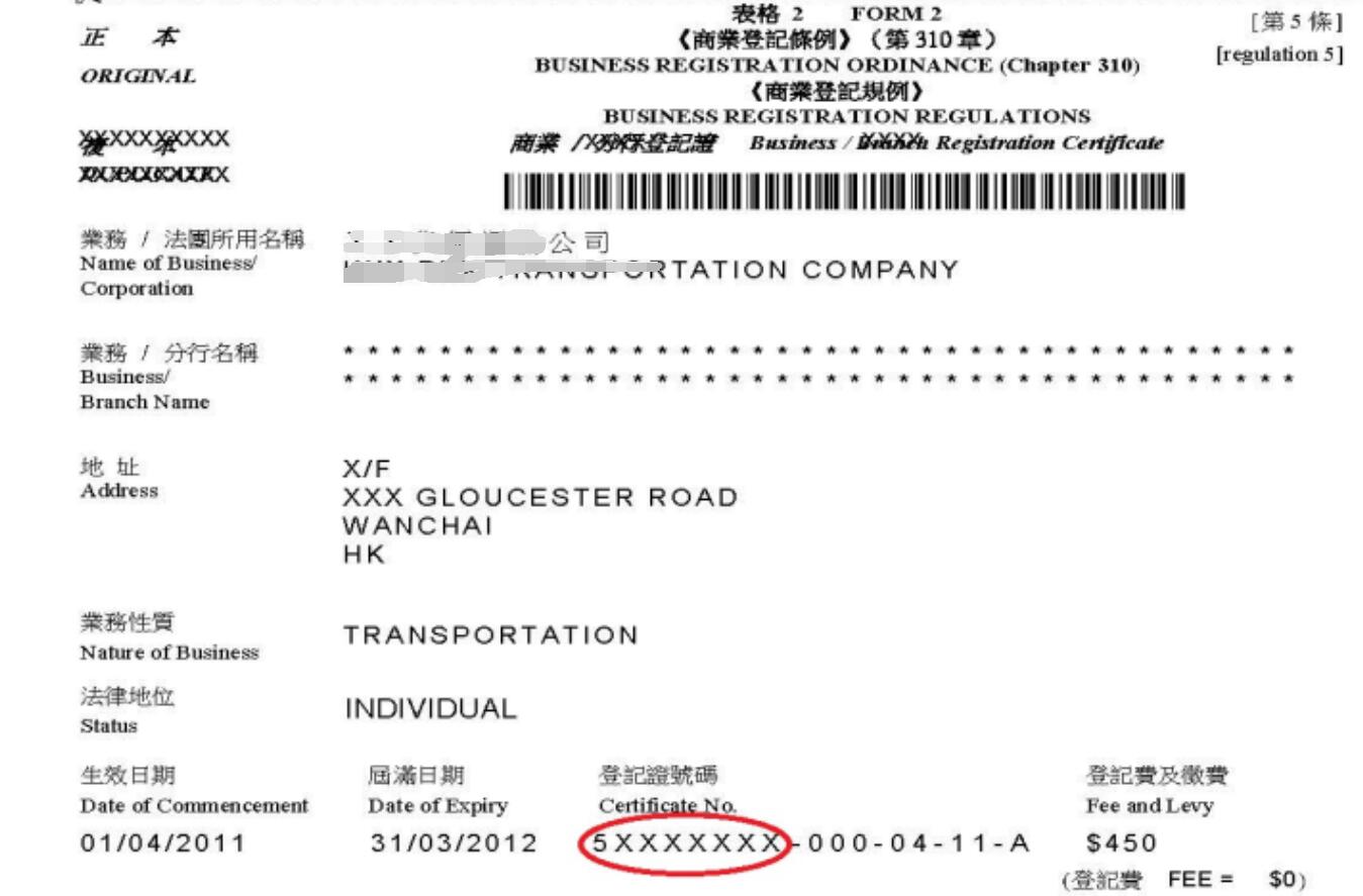 個(gè)人是身份證號(hào)碼 香港公司是商業(yè)登記證書前 8位數(shù)字答