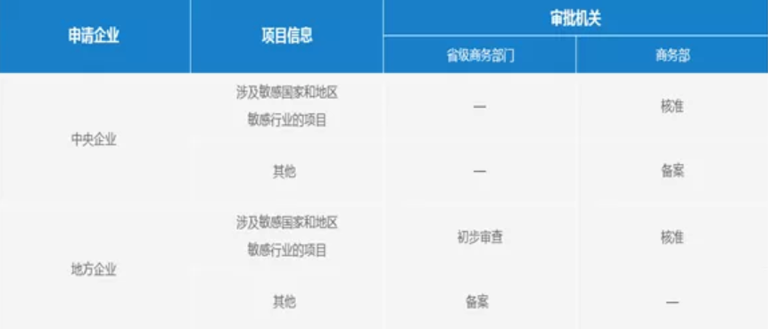 商務(wù)及地方商務(wù)部門關(guān)于境外投資的核準(zhǔn)及備案流程