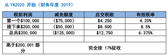 目前,新加坡自2020年開始及2019年后成立且符合相關(guān)規(guī)定的企業(yè),首個(gè)三年應(yīng)稅所得中,擁有稅收減免計(jì)劃,首10萬(wàn)新幣應(yīng)稅利潤(rùn)可享有75%的稅收減免,稅率是4.25% ;高于20萬(wàn)新幣的部分按標(biāo)準(zhǔn)的17%的稅率計(jì)算。第二個(gè)10萬(wàn)新幣應(yīng)稅利潤(rùn)可享有50%的稅收減免,稅率為8.5%。