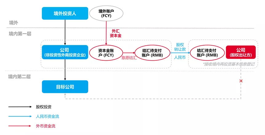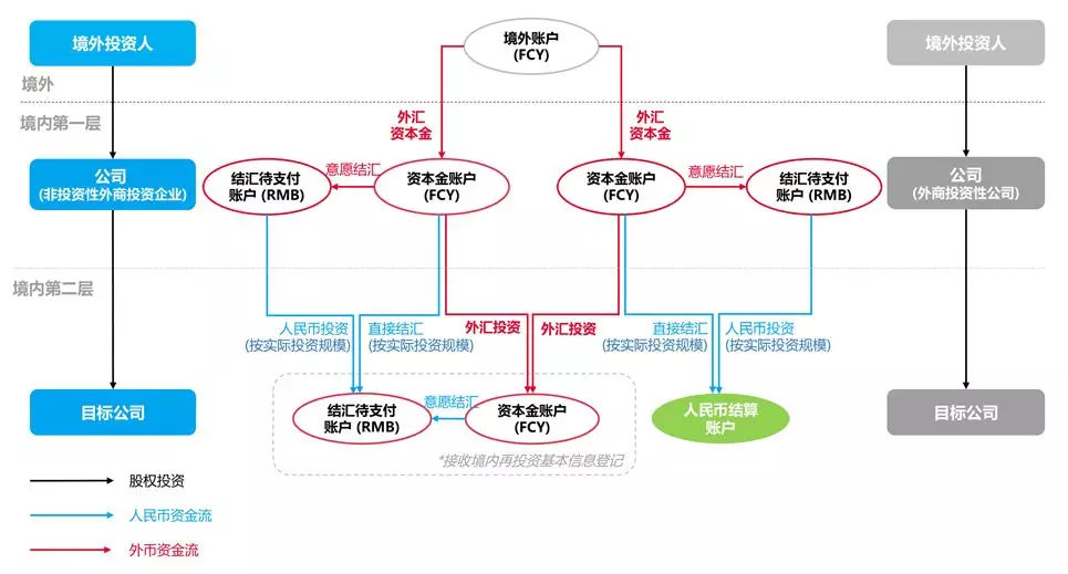 在利用結(jié)匯人民幣資金以股權(quán)并購(gòu)的方式進(jìn)行境內(nèi)再投資的情形下,就外商投資性公司而言,資本金應(yīng)當(dāng)匯入股權(quán)出讓方的人民幣結(jié)算賬戶且資金使用不受限制,賣(mài)方無(wú)須進(jìn)行接收境內(nèi)再投資基本信息登記;而就非投資性外商投資企業(yè)而言,資本金應(yīng)當(dāng)匯入股權(quán)出讓方的結(jié)匯待支付賬戶,由股權(quán)出讓方按照結(jié)匯待支付賬戶的支出范圍進(jìn)行使用,賣(mài)方還應(yīng)辦理接收境內(nèi)再投資基本信息登記。