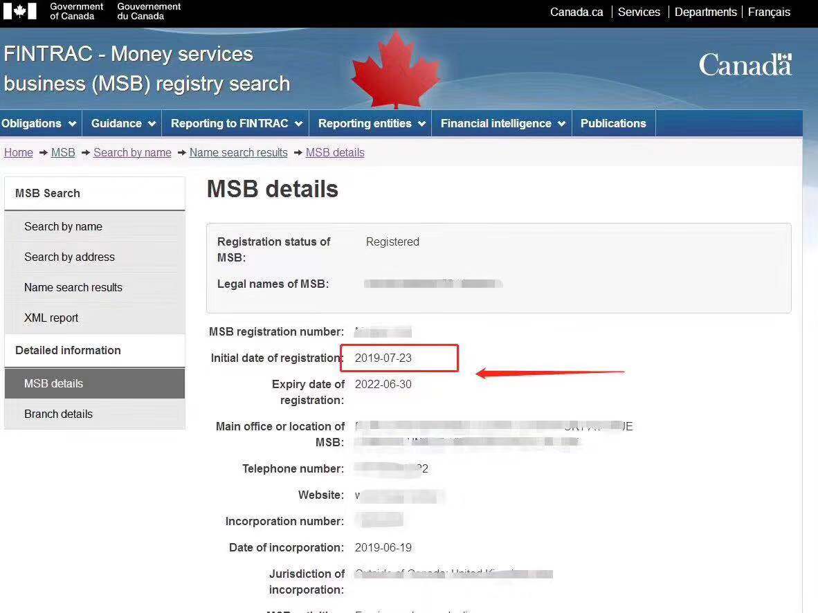 牌照申請完成后,可以在加拿大聯(lián)邦政府官網(wǎng)金融監(jiān)管分類網(wǎng)址上面進(jìn)行查詢。