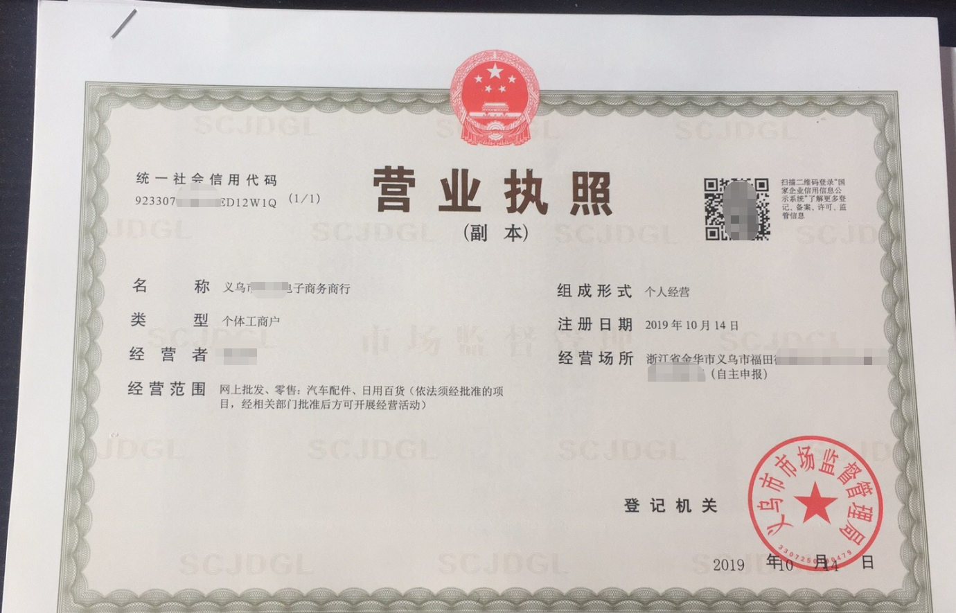 2:公司名稱是工商隨機的,格式為義烏市XX電子商務(wù)商行