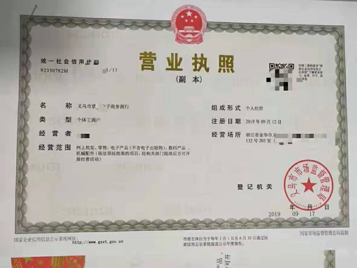 3)個體戶名稱:義烏市xx電子商務(wù)商行(一般工商隨機)