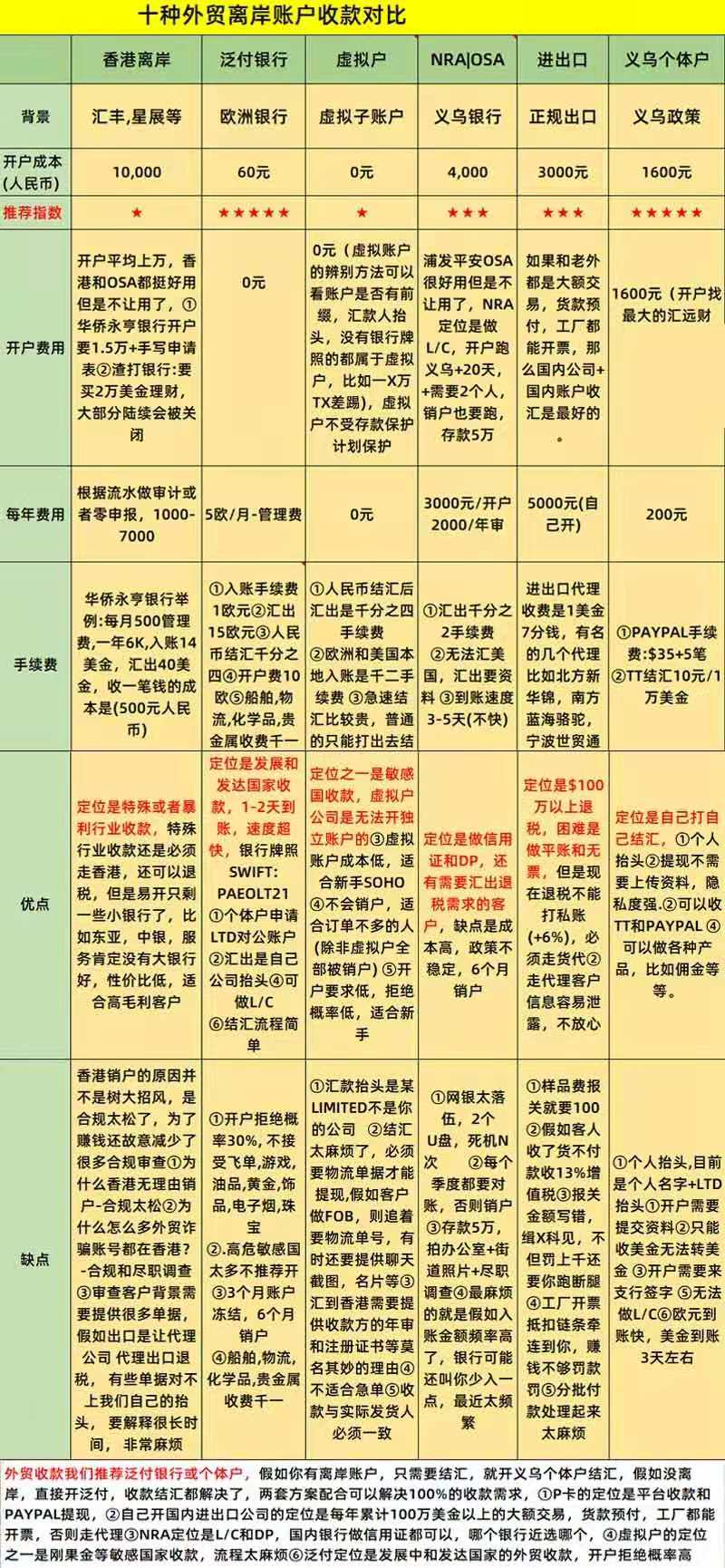 ⑤香港適合國(guó)企,定位特殊行業(yè)收款,比如珠寶和飾品等,缺點(diǎn)是一直以來風(fēng)控太差,導(dǎo)致現(xiàn)在要大批銷戶,開戶門檻和運(yùn)營(yíng)成本太高。