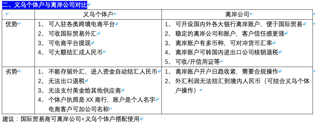 離岸公司可以無(wú)限制收外匯和轉(zhuǎn)賬,那么賬戶(hù)大量外匯怎么結(jié)匯人民幣呢?中國(guó)對(duì)外匯結(jié)匯規(guī)定一個(gè)人一年只能結(jié)匯5萬(wàn)美金,對(duì)很多SOHO玩家來(lái)說(shuō),這點(diǎn)結(jié)匯額度是杯水車(chē)薪,遠(yuǎn)遠(yuǎn)不夠,針對(duì)離岸賬戶(hù)結(jié)匯難下面給大家介紹一種新的結(jié)匯方式,在義烏申請(qǐng)個(gè)體工商戶(hù),開(kāi)立個(gè)體戶(hù)賬戶(hù),一答