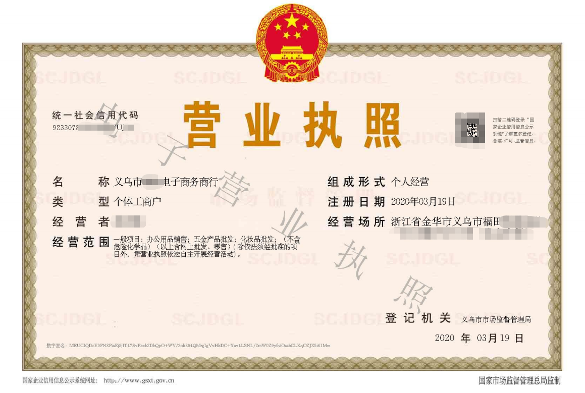 1)個(gè)體戶法人需親自到義烏,攜帶如下材料