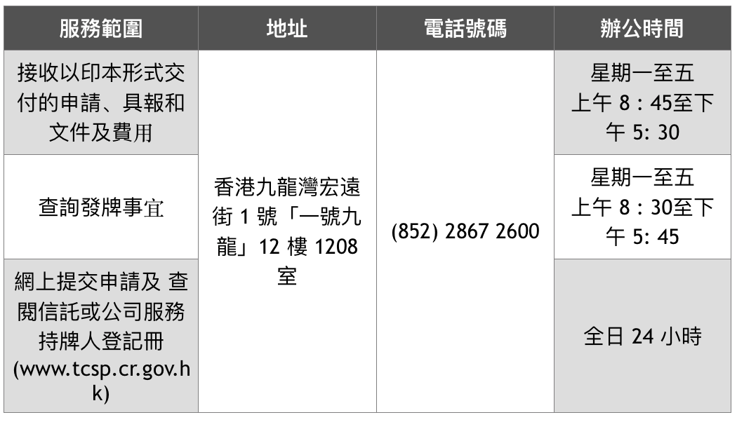 信托及公司服務(wù)提供者注冊辦事處(一號(hào)九龍)