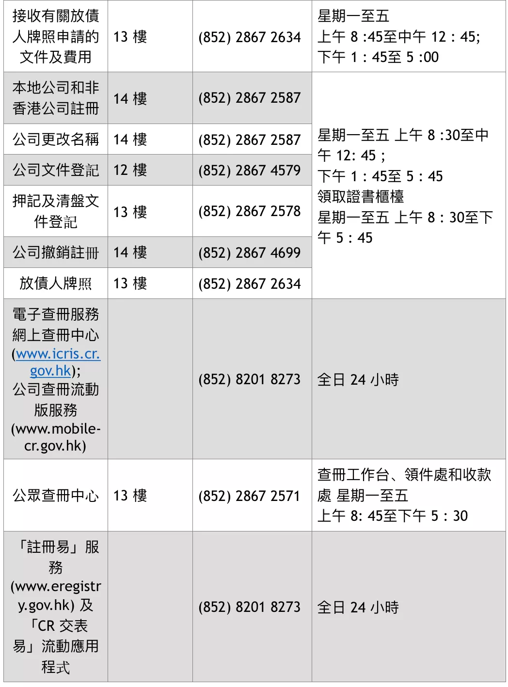 柜臺(tái)服務(wù)由5月4日起恢復(fù)正常辦公時(shí)間正常辦公時(shí)間的詳情如下:公司注冊處(金鐘道政府合署)