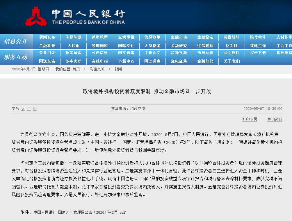 重大消息,央行:取消境外機(jī)構(gòu)投資者額度限制
