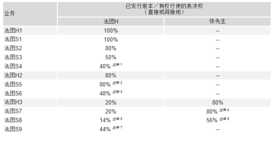 張先生與法團(tuán)H擁有以下公司: 注釋: