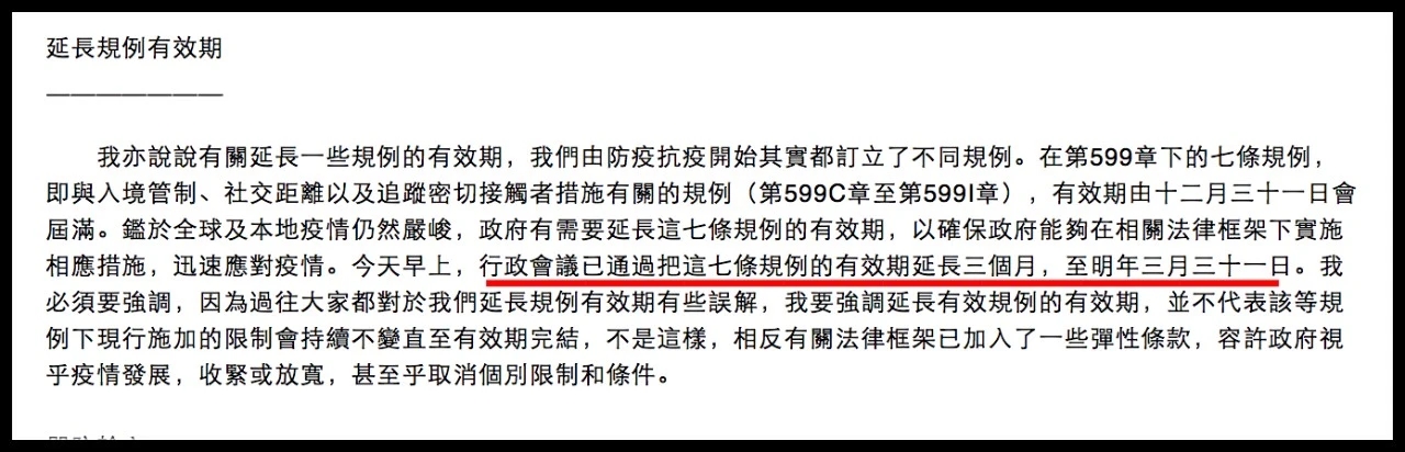 同時《若干到港人士強(qiáng)制檢疫規(guī)例》有效期延長3個月至3月31日。
