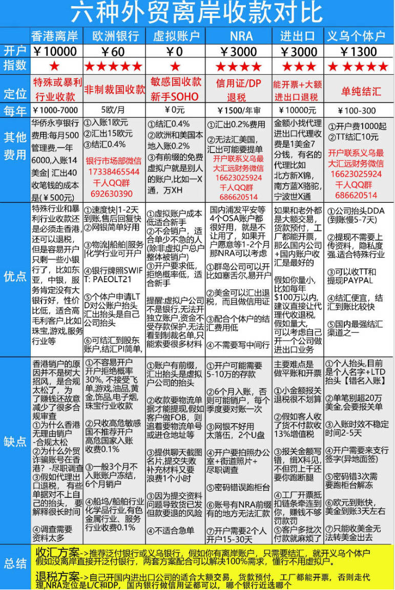 義烏個(gè)體戶主要優(yōu)點(diǎn)能無限額結(jié)匯,到賬1-3天,并且開建行還可做虛擬產(chǎn)品(比如游戲幣,谷歌傭金啊等),結(jié)匯無需提供物流和PI,隱私更強(qiáng). 能收個(gè)人的PAYPAL提現(xiàn),缺點(diǎn)是開戶需要本人帶身份證跑支行簽到(全國9個(gè)城市支行)缺點(diǎn)②無法退稅和美金轉(zhuǎn)賬.個(gè)體戶賬戶可以收匯,但是不可以美金提現(xiàn)轉(zhuǎn)賬,所以如果說你的美金收進(jìn)來就需要結(jié)匯人民幣那么直接用個(gè)體戶賬戶,如果說美金需要匯到工廠退稅或者說國外客戶不接受個(gè)人賬戶匯款的情況就用泛付③無法收企業(yè)PP提現(xiàn)④每次備注都要寫中間行,這個(gè)比較麻煩!