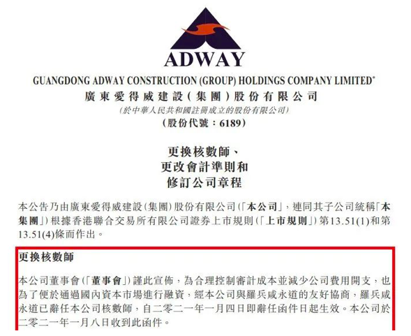 盡管兩家上市公司和自家審計師各有“齟齬”,但卻結(jié)局不同:愛德威建設(shè)集團選擇了和普華永道說“再見”,更換了新的核數(shù)師——「為合理控制審計成本并減少公司費用開支,也為了便于通過A股資本市場進行融資,經(jīng)公司與羅兵咸永道的友好協(xié)商,羅兵咸永道已辭任公司核數(shù)師。審核委員會推薦聘請立信會計師事務(wù)所(特殊普通合伙)為核數(shù)師?!?br />