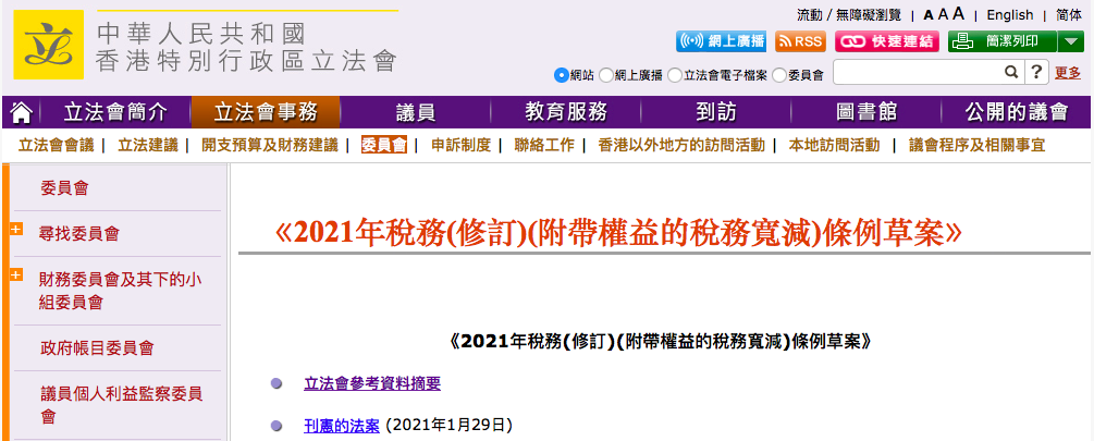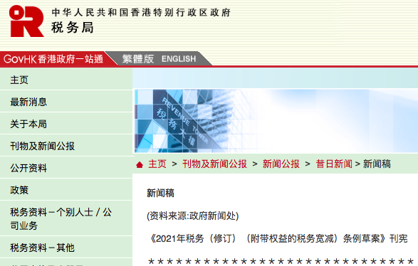 1月29日,香港《2021年稅務(wù)(修訂)(附帶權(quán)益的稅務(wù)寬減)條例草案》(《條例草案》)刊憲,以便為在香港營運的合資格私募基金所分發(fā)的附帶權(quán)益提供稅務(wù)寬減。